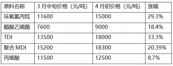 据万华化学发布公告,4月开始,中国地区聚合MDI分销市场挂牌价17800元/吨(比3月份价格上调2600元/吨),直销市场挂牌价18300元/吨(比3月份价格上调2800元/吨);纯MDI挂牌价26200元/吨(比3月份价格上调1500元/吨)。