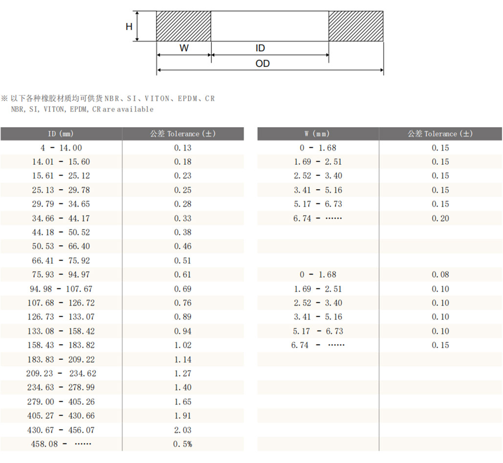 橡胶材质:NBR,EPDM,HNBR,CR,VMQ,FKM,FVMQ等。