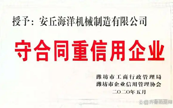 在山东潍坊安丘的机械制造产业版图中,安丘海洋机械制造有限公司凭借数十年如一日的诚信经营,成为区域内极具口碑的标杆企业。自成立以来,公司始终将 “诚信、创新永续、服务” 作为核心经营准则,在合同管理、劳务保障、产品质量等维度持续深耕,不仅赢得了市场与客户的认可,更收获了多项权威荣誉,成为行业内诚信发展的标杆企业。more + 2025-08-28
