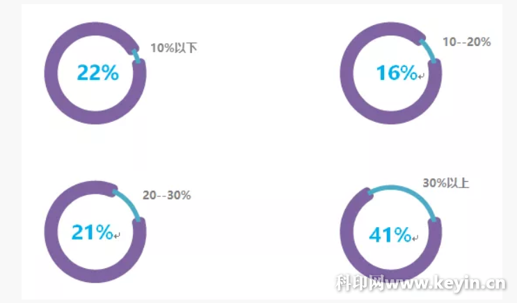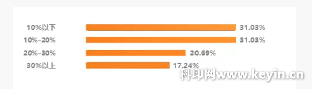 由此可见,在企业转型印刷电商中,销售收入上升的企业大部分的增长幅度在20%及以下。与去年相比,在转型的印刷企业中,销售收入上升幅度明显降低,说明在印刷电子商务的影响下,销售收入在趋于平稳。